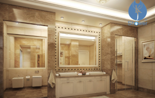衛浴間一般由洗漱區、沐浴區、如廁區三個功能區組成。其中,洗漱區是刷牙洗臉洗手等的區域,這個區域基本上由浴室柜、臺面、洗手盆、水龍頭