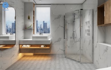 在這個(gè)恬靜的沐浴樂(lè)園中,一切都被精心設(shè)計(jì)和布置。淋浴房的外觀線條流暢,簡(jiǎn)約而不失現(xiàn)代感,散發(fā)出一種優(yōu)雅的氛圍。透明的玻璃門隔斷出一個(gè)獨(dú)立的空間,保護(hù)著我們的隱私,同時(shí)也讓自然光線充滿整個(gè)房間。溫暖的水流從噴頭中噴射而出,如同一股溫柔的撫摸,讓人感受到無(wú)比的舒適和放松。