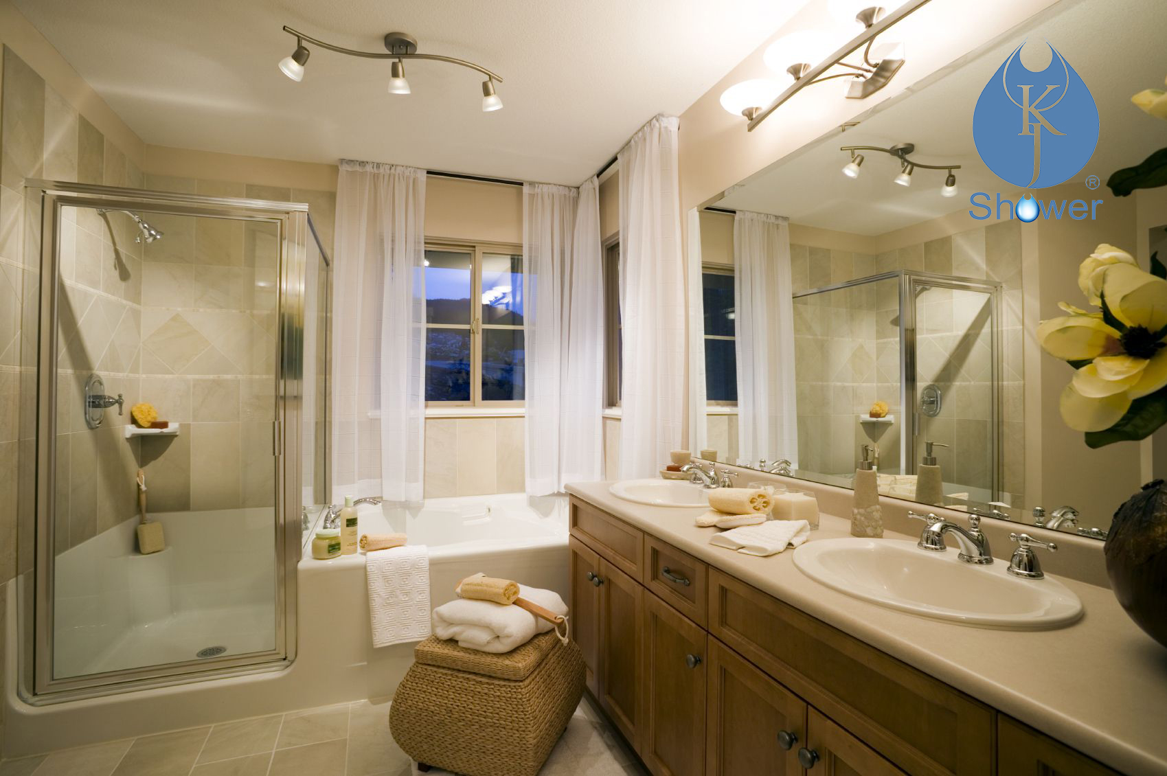 針對空間比較廣大的衛浴間來說,就可以將淋浴區與是坐便、洗手、沐浴功用徹底隔開,把淋浴部分單獨劃分、獨立出來,配上玻璃淋浴房,浴室里的精約大氣豪情不自禁。在這樣的規劃中,扇形、鉆石型等獨立式規劃的淋浴房就很適用。從這些事例中不難看出,清潔間干濕區的分別規劃,離不開人性化、美麗兩個層面,科學的規劃與選購,不只讓淋浴房具有距離空間的作用,在視覺上也讓衛浴空間更時尚賦有空間層次感。