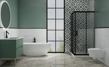 復古風情的純色瓷磚,大面積的鋪貼在澡堂里,深淡色系調配完美,淋浴房同樣色系的花邊瓷磚鋪貼,小復古調調富麗麗展示出來,讓你走進去彷如到了70、80年代的家中,有一種異樣的時髦氣味從中發(fā)出。