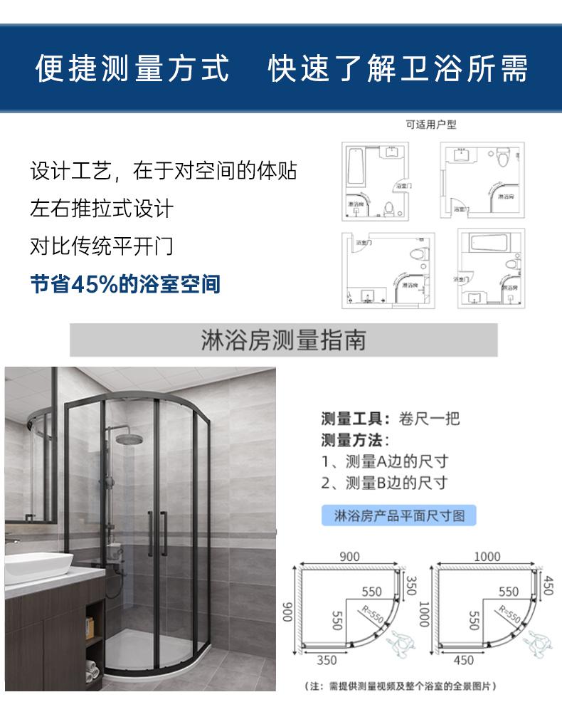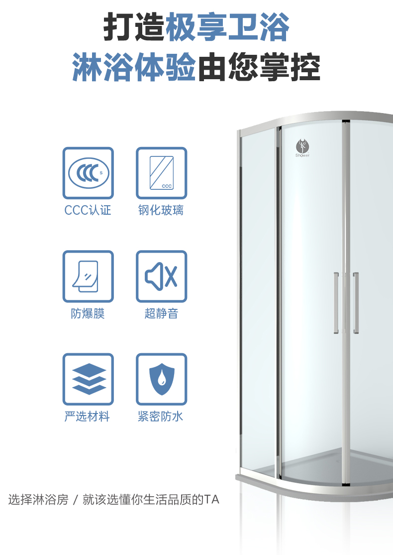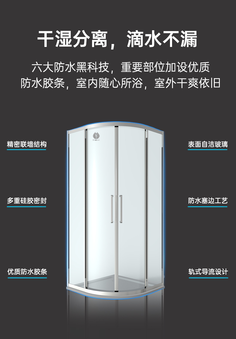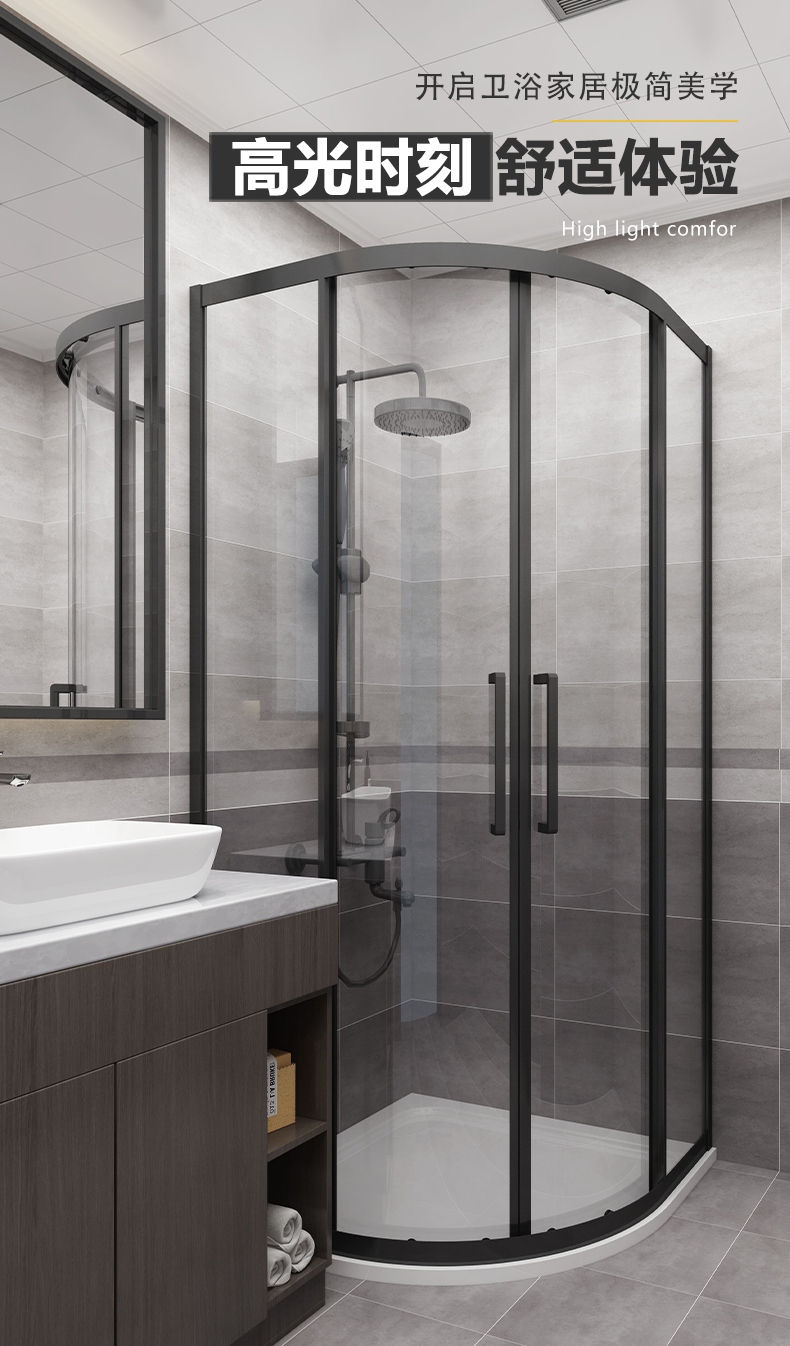 • 設計理念:弧形淋浴房將微妙的色彩關系與線條和實體感受融為一體,是色彩感覺特別亮麗,筆觸輕快而有變化,將方圓之間和寬窄之間搭配的錯落有致,相得益彰,將樸實和原始的率真再一次表達出來。