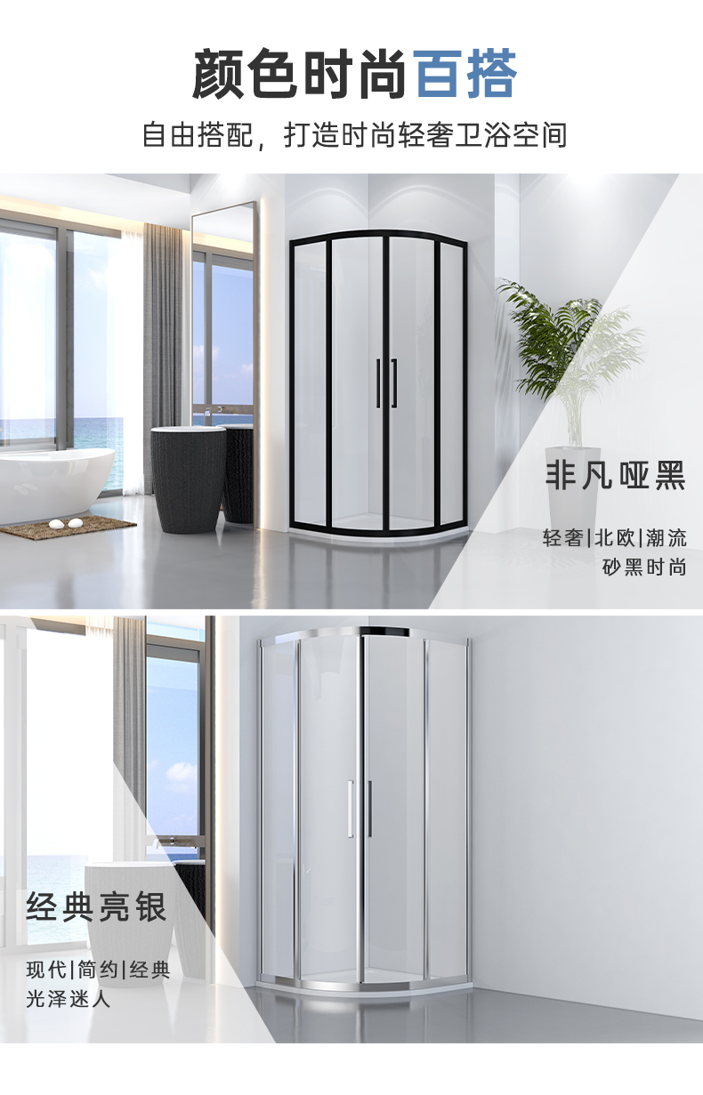 淋浴房系列名稱:FW系列 五金顏色:雅黑/雅白