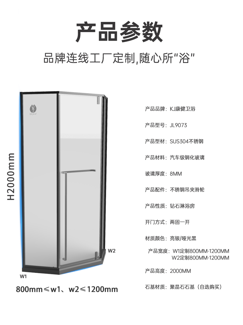 鉆石形淋浴房JL9073
